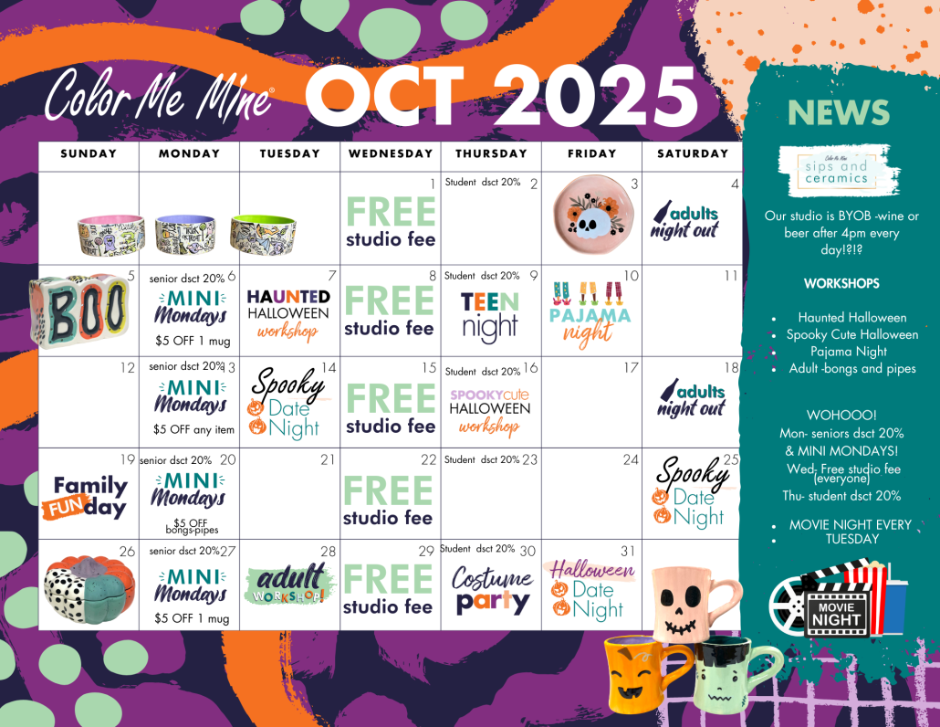 Last call to paint is 7pm - If we don't have anyone by 7pm we close early. :) It takes about 2-3 weeks for your ceramics to be ready for pick up. MUST HAVE YOUR RECEIPT.